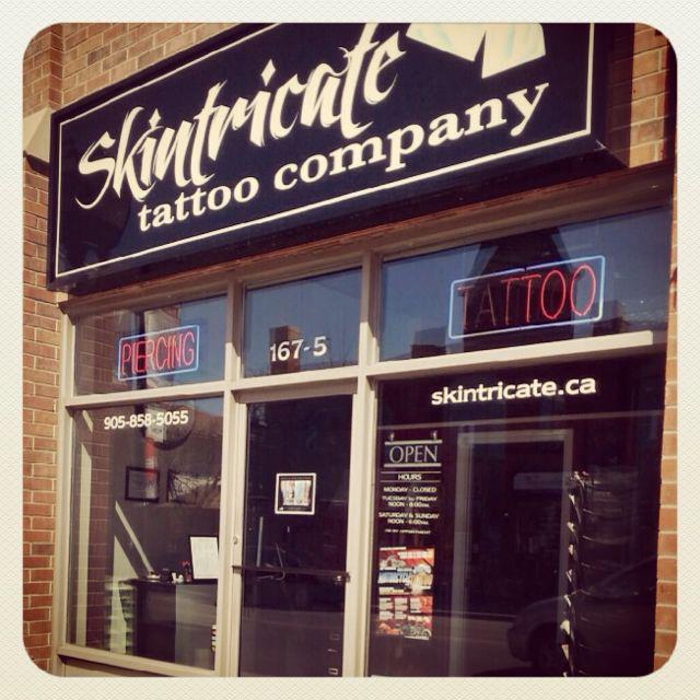Skintricate Tattoo Company is a custom tattoo and body modification studio located in the heart of Streetsville in Mississauga, ON. We have four amazing tattoo artists: Hollywood, Kyle, Mike, and Tamara, who all strive to produce amazing pieces of art. And of course, there is Anna – piercer extraordinaire! The shop is run by our Shop Manager, Savannah.